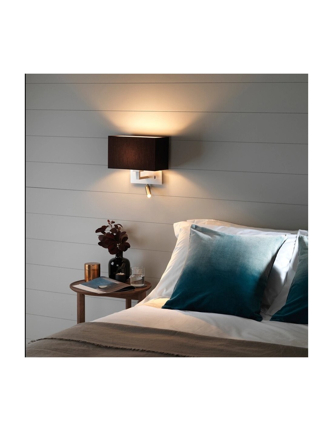 Cette applique est disponible en 3 finitions et 4 coloris d’abat-jour :