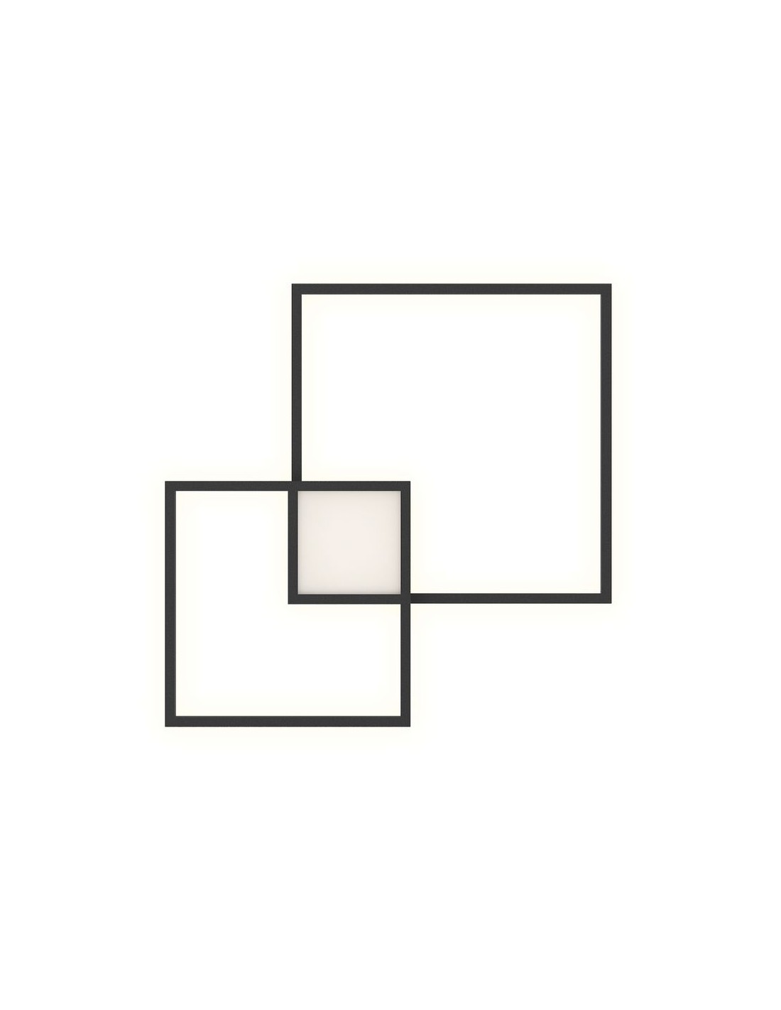 L’applique VENN est constituée de 3 carrés reliés entre eux, dont deux en forme de cadre. Le carré central s'éclaire pour un éclairage direct, tandis que les cadres diffusent un éclairage indirect.