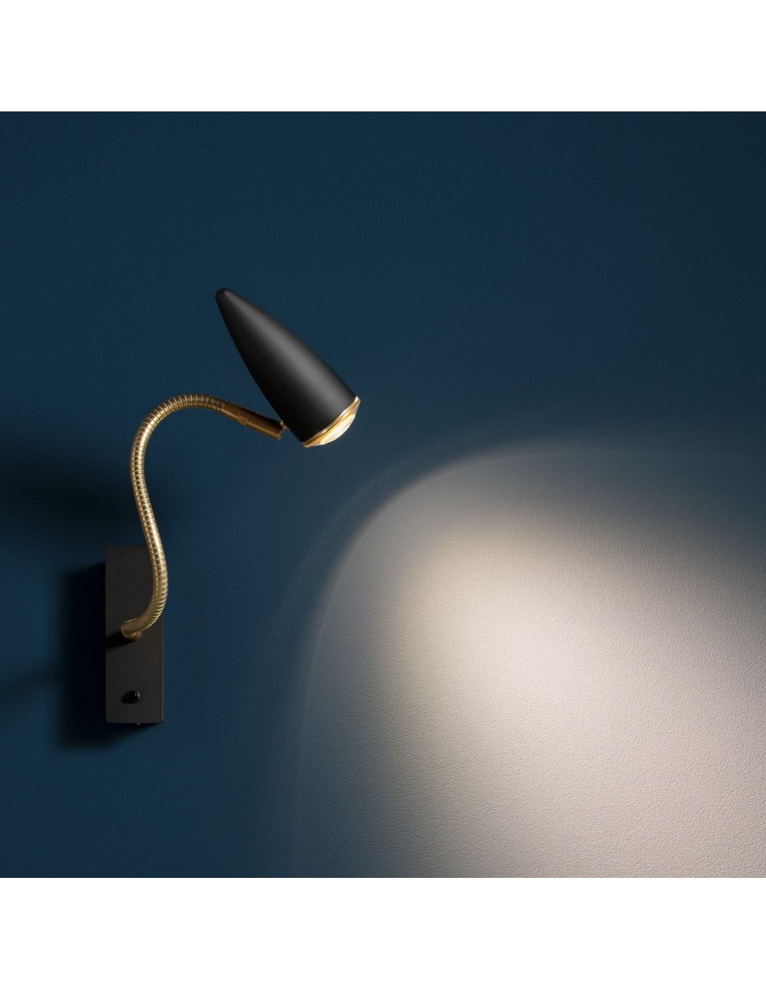 - CicloItalia Flex W1 : applique simple avec un seul flexible - ampoule 1x GU5.3 LED 7W 3000°K blanc chaud 630lm dimmable incluse + interrupteur on/off sur la base inclus.
