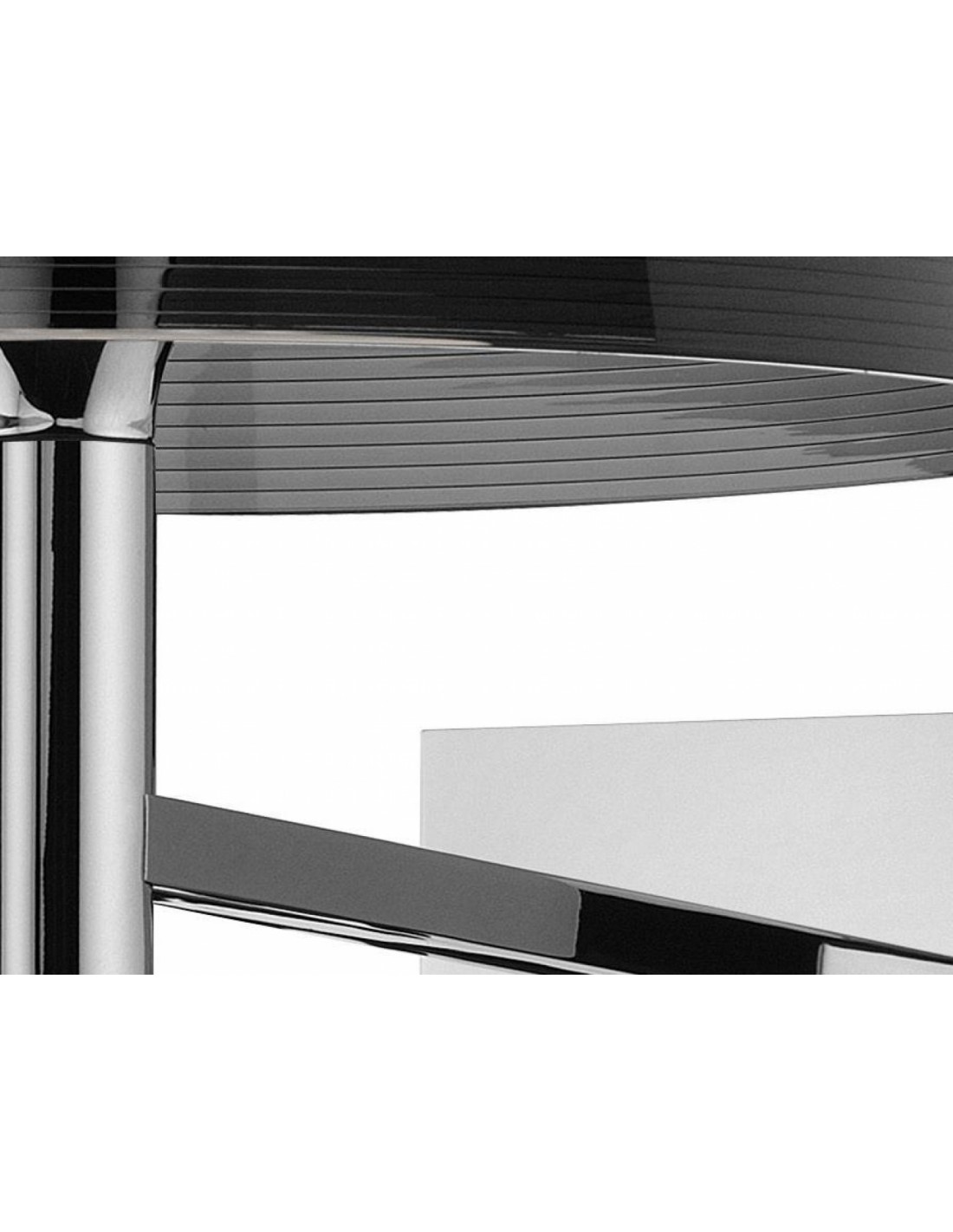 La structure de cette lampe est entièrement réalisée de tubes d'aluminium poli revêtus de laque transparente, le diffuseur quant à lui est en polycarbonate opalin.