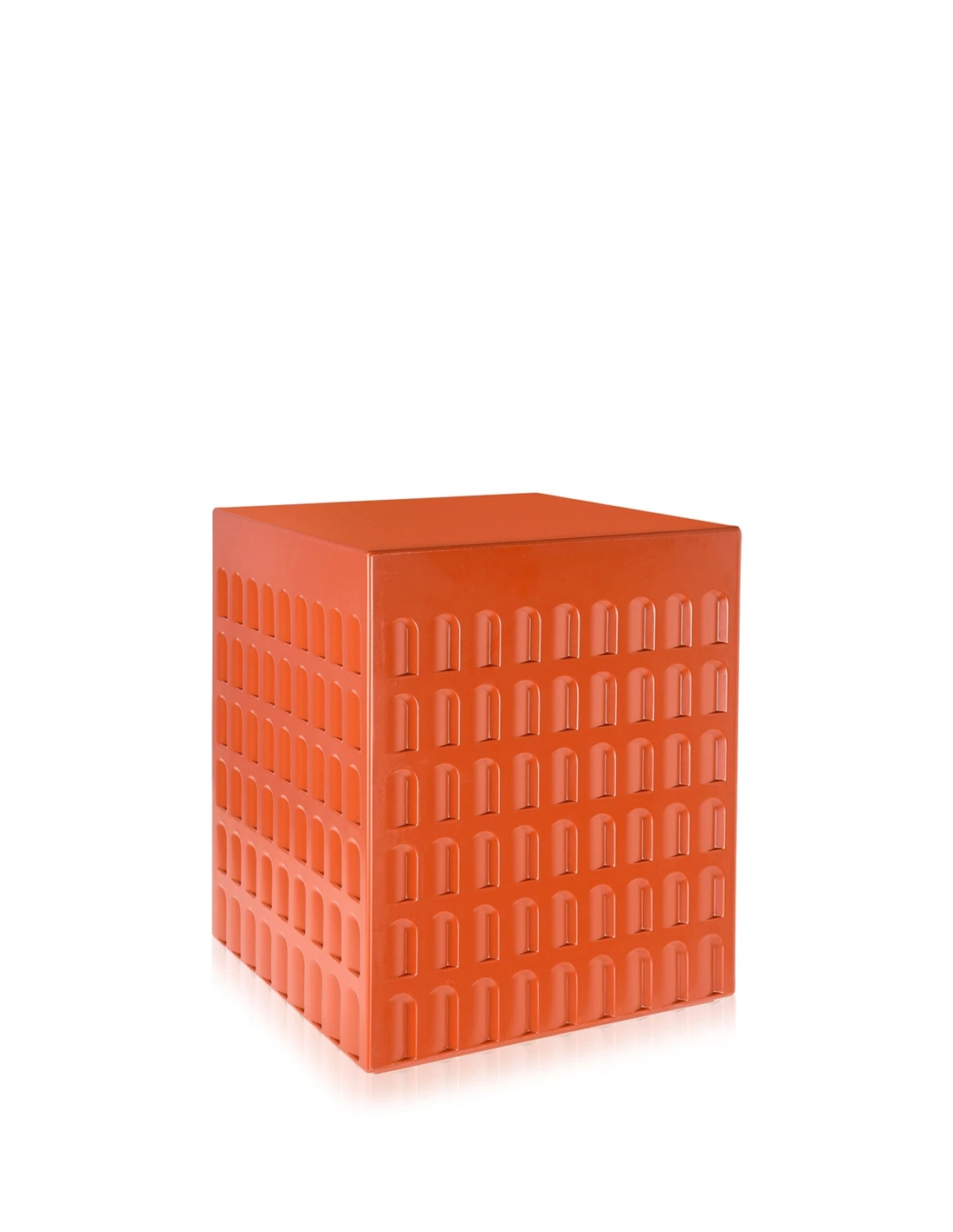Il doit son nom au célèbre quartier futuriste de l'EUR (Esposizione Universale di Roma) au sud de Rome, où ce palais est situé. Ce meuble est un cube massif en plastique imprimé de multiples rangées symétriques d’arches qui lui confèrent un certain style néoclassique. A la fois tabouret, table d’appoint ou encore petite table basse, EUR peut être utilisé aussi bien à l’intérieur qu’à l’extérieur.