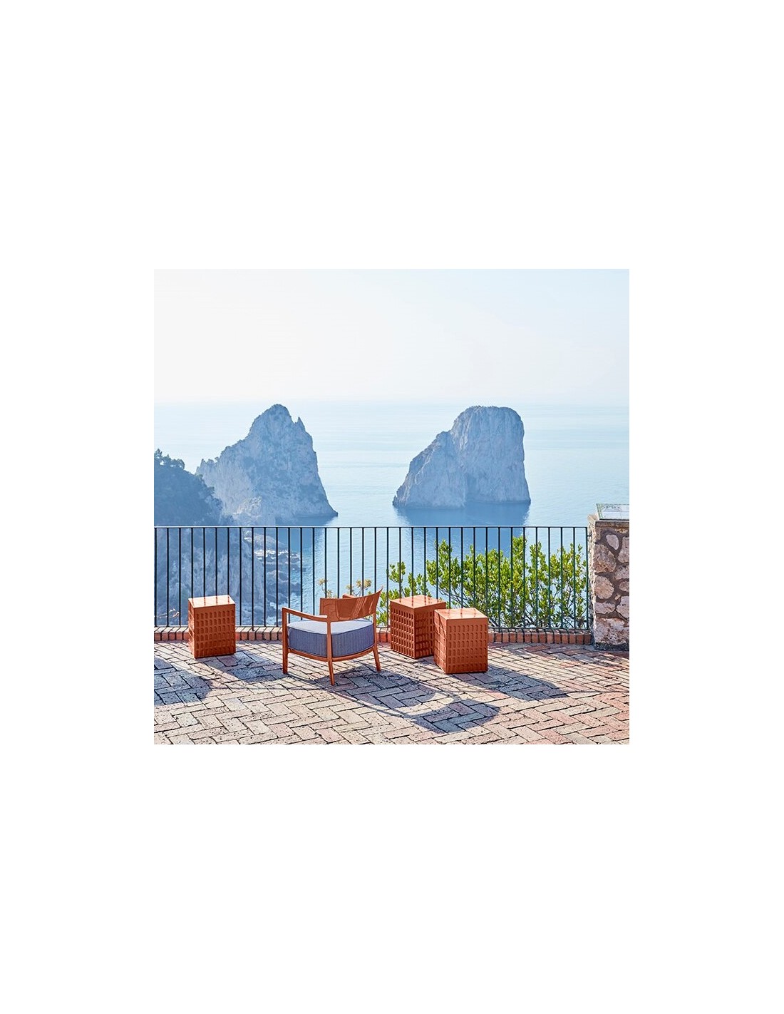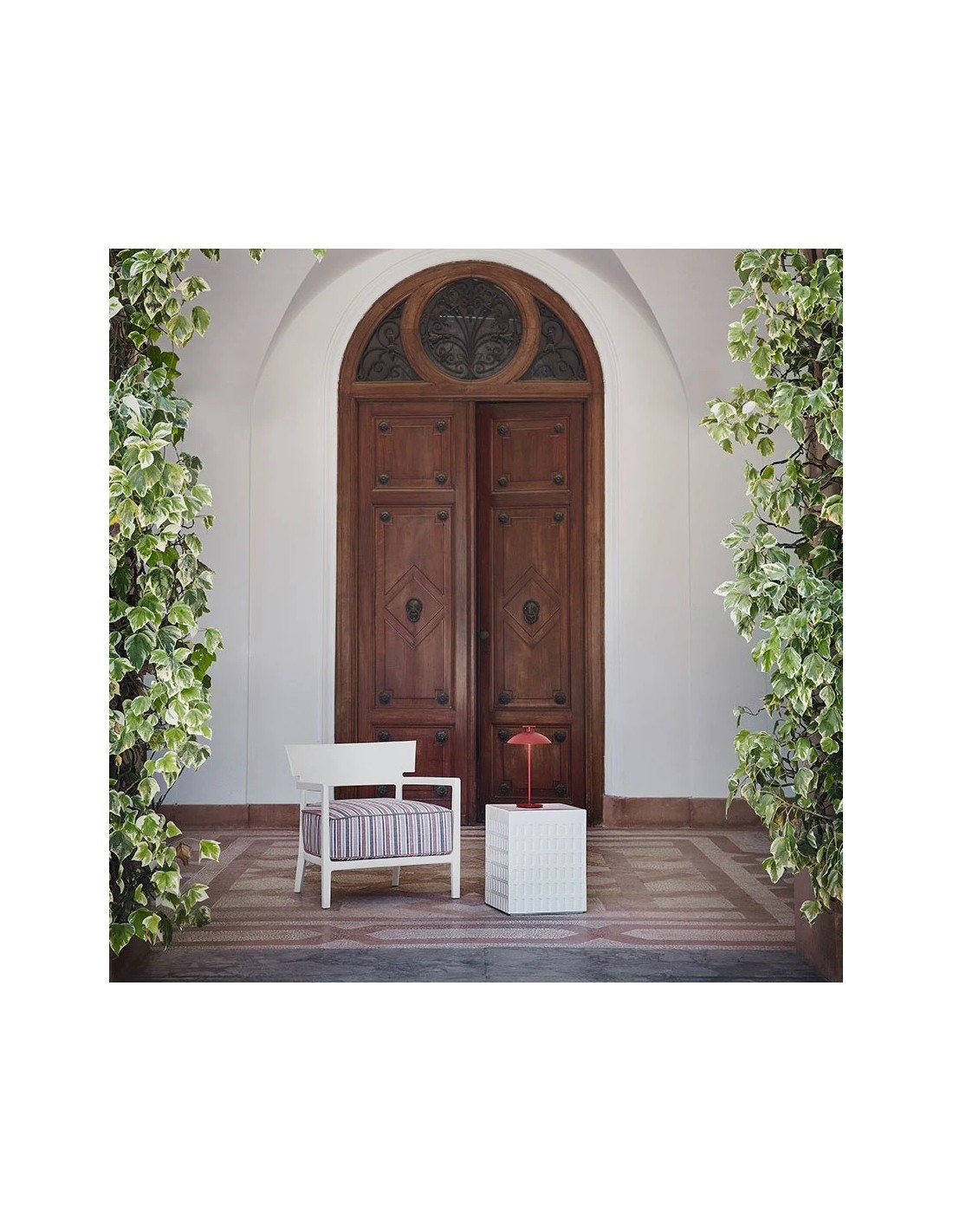 Tabouret EUR rouge terre Kartell - Valente Design - sur terrasse