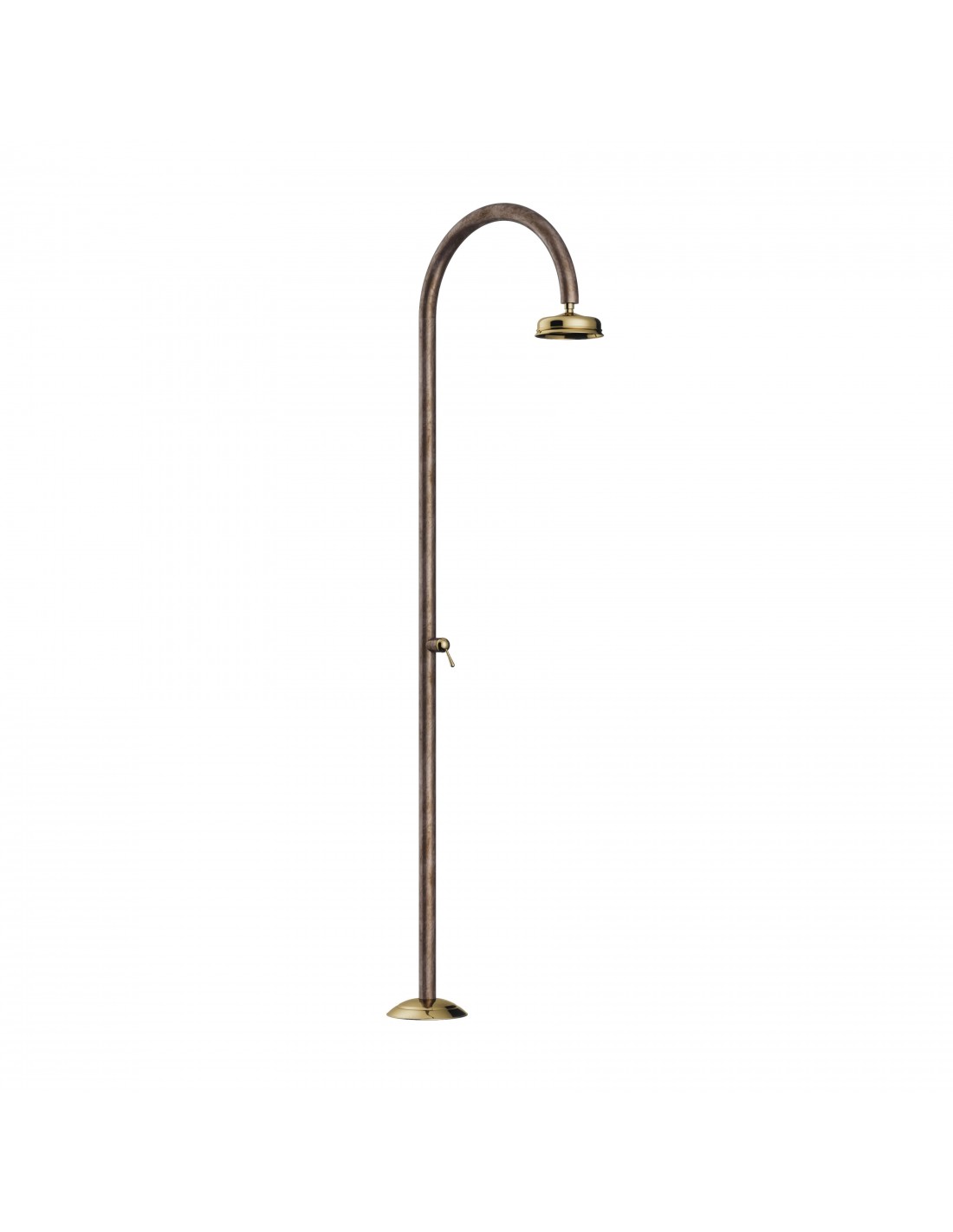 Cette douche de piscine s’invitera tout naturellement au cœur de votre jardin ou au bord de votre piscine. Sa finition cuivre « vieilli » lui confère un aspect à la fois chic et authentique pour se fondre spontanément dans votre espace jardin. Entièrement fabriquée en cuivre avec une touche en laiton poli pour la pomme de douche et le mitigeur, cette élégante douche est sujette à l'oxydation naturelle et peut subir une patine foncée non uniforme avec le temps, ce qui lui donne toute son authenticité.