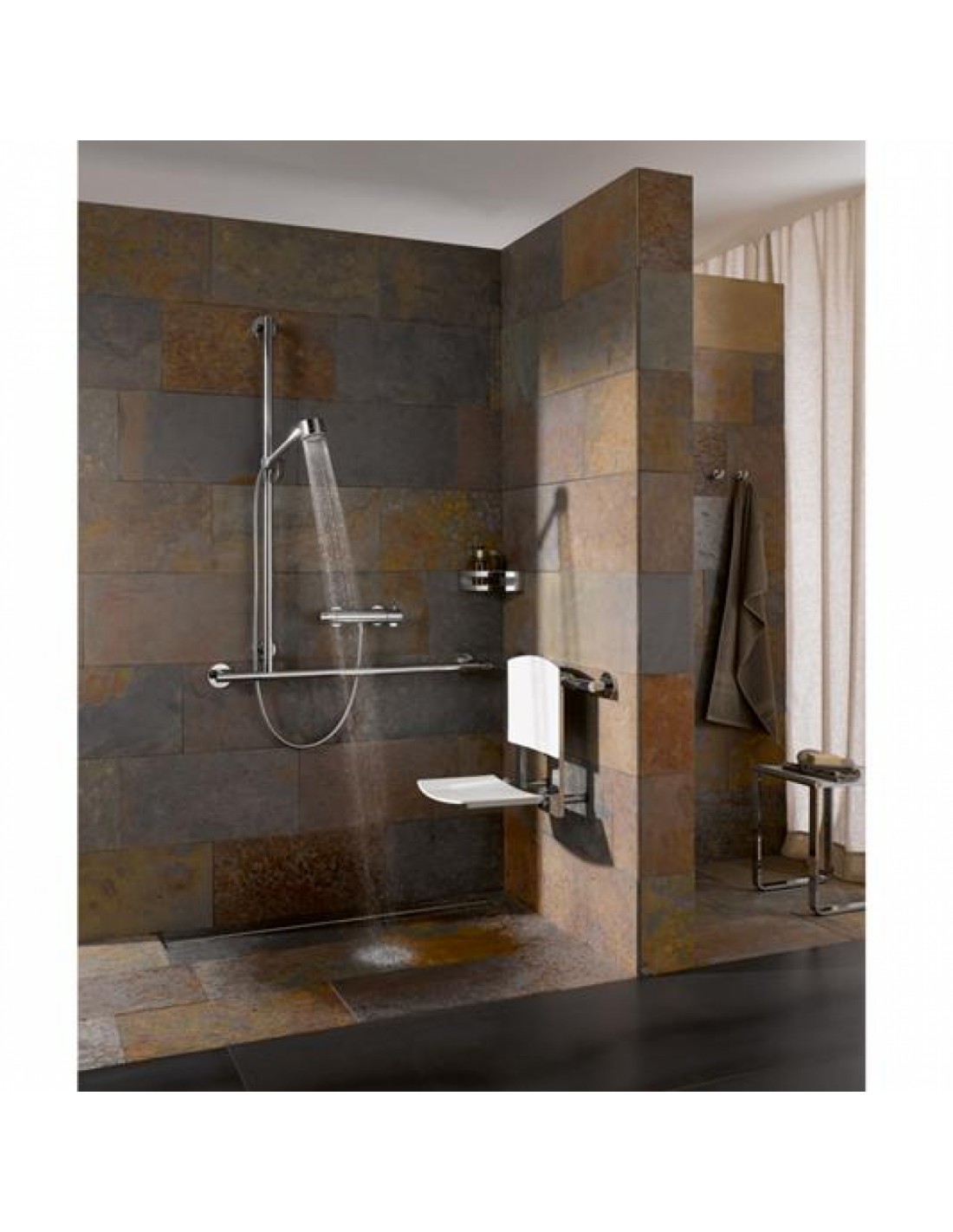 Le produit phare de cette série demeure le siège de douche rabattable avec ou sans dossier qui vous convaincra au premier regard grâce à ses finitions de très haute qualité.